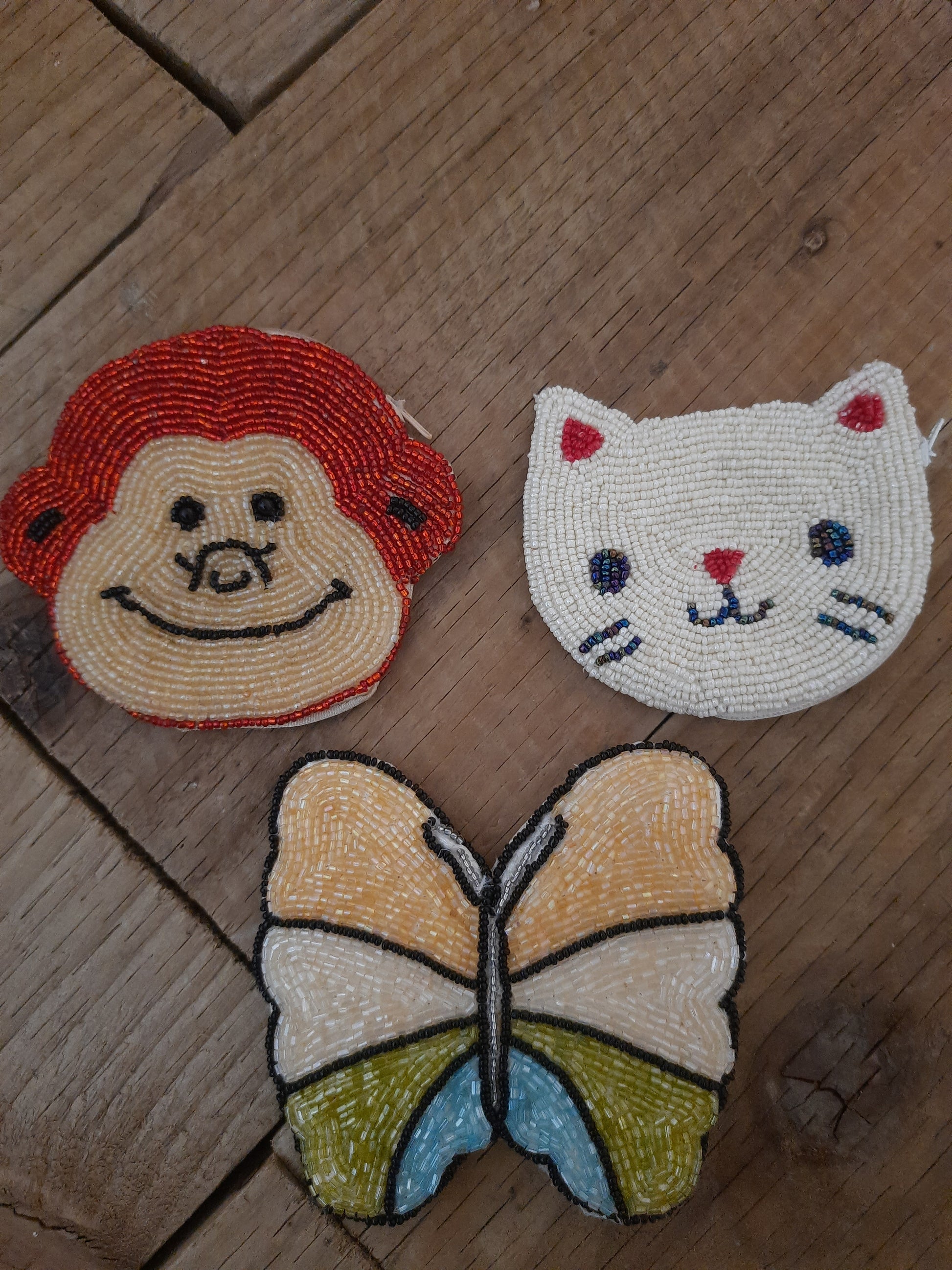 The front of this cute butterfly fair trade purse is made using colourful little beads with the back of the purse made from fabric cloth.