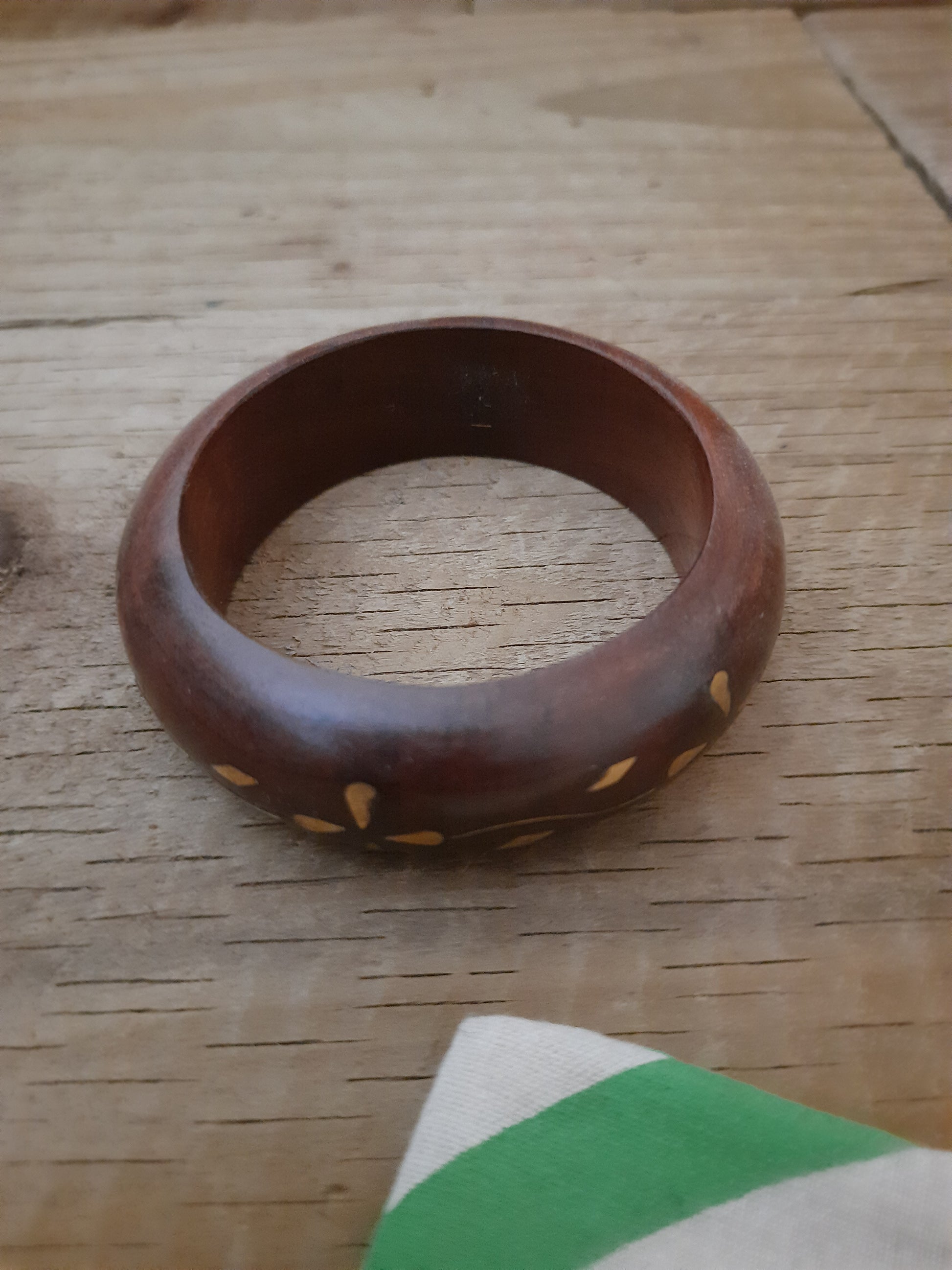 Ethically sourced from India and made with great care, attention and detail, this lovely wooden fair trade bangle looks so natural and beautiful.