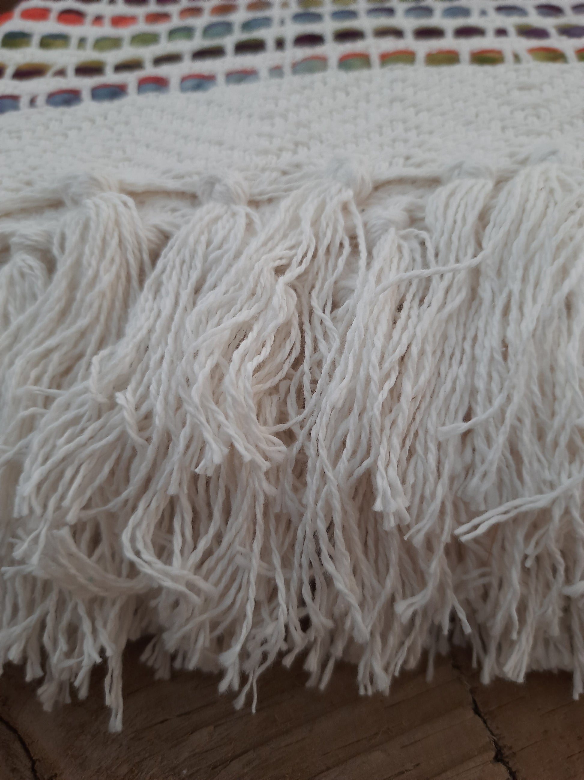 Bring warmth, style, and sustainability into your home with this eco-friendly white throw blanket with tassels—a piece you can feel good about.
