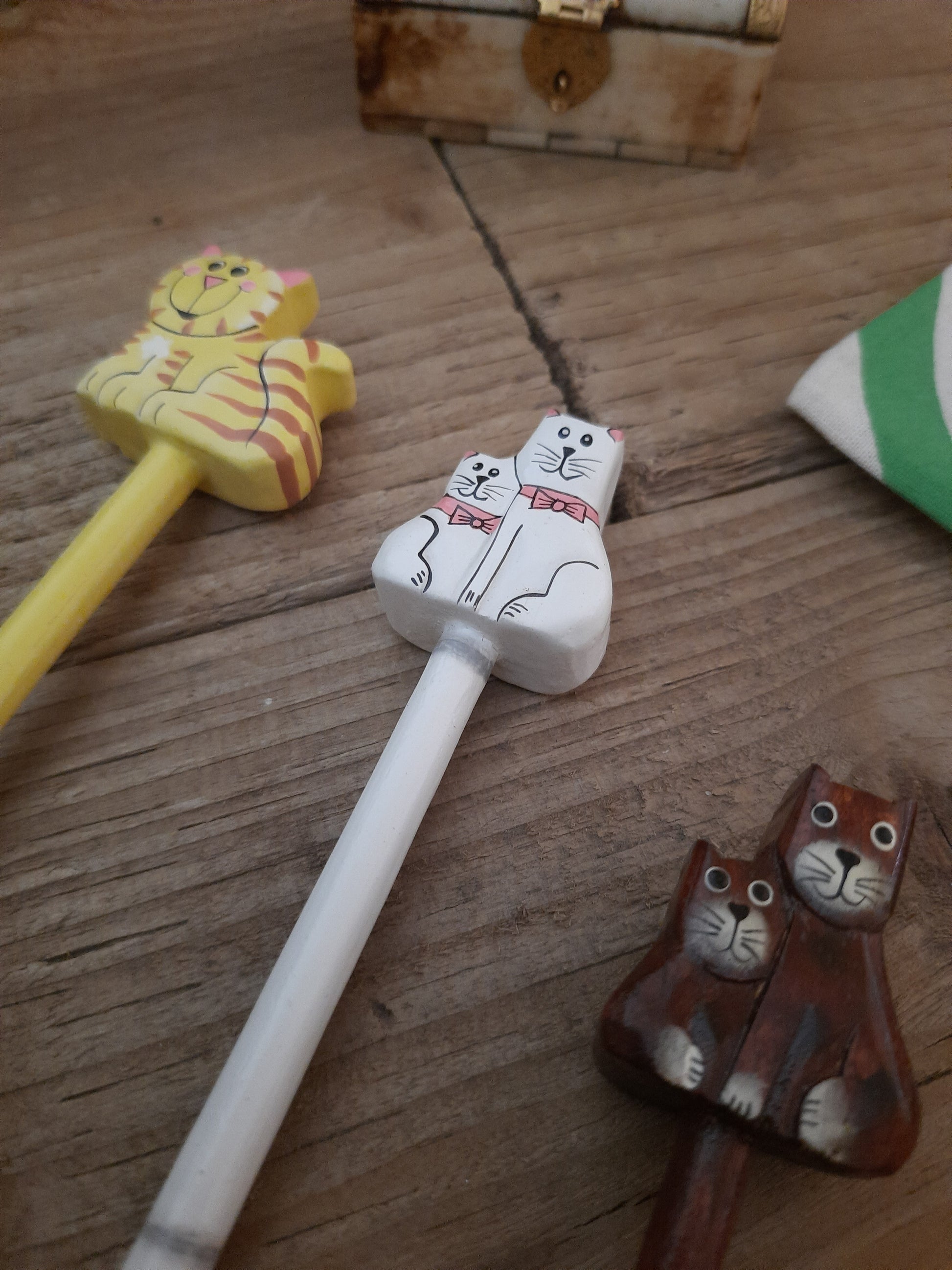 Here we have a lovely pair of fair trade cats nestled together on the end of a lovely fun novelty pencil.
