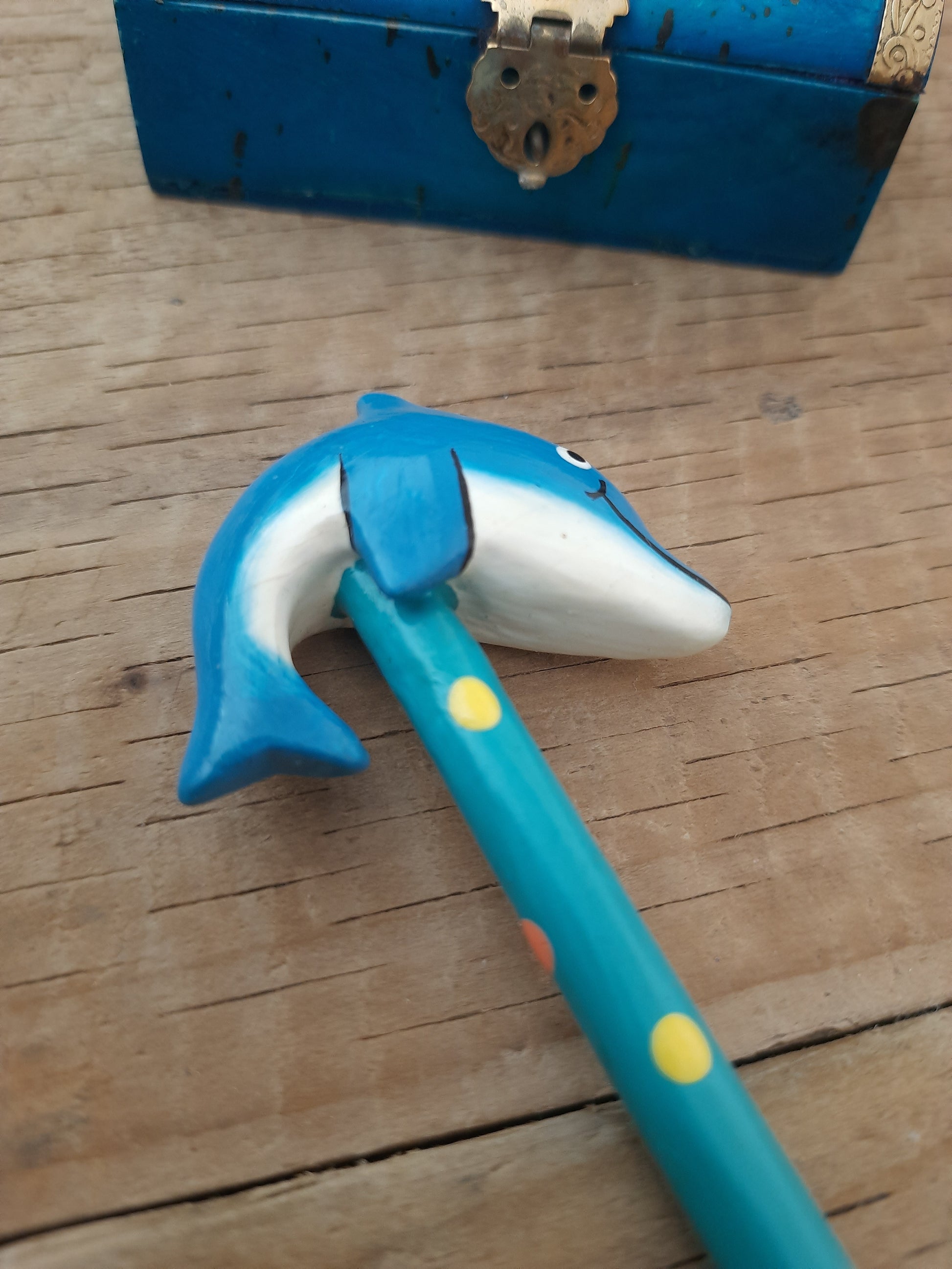Young one's imagination will go wild with this extremely cute and adorable dolphin themed wooden pencil.