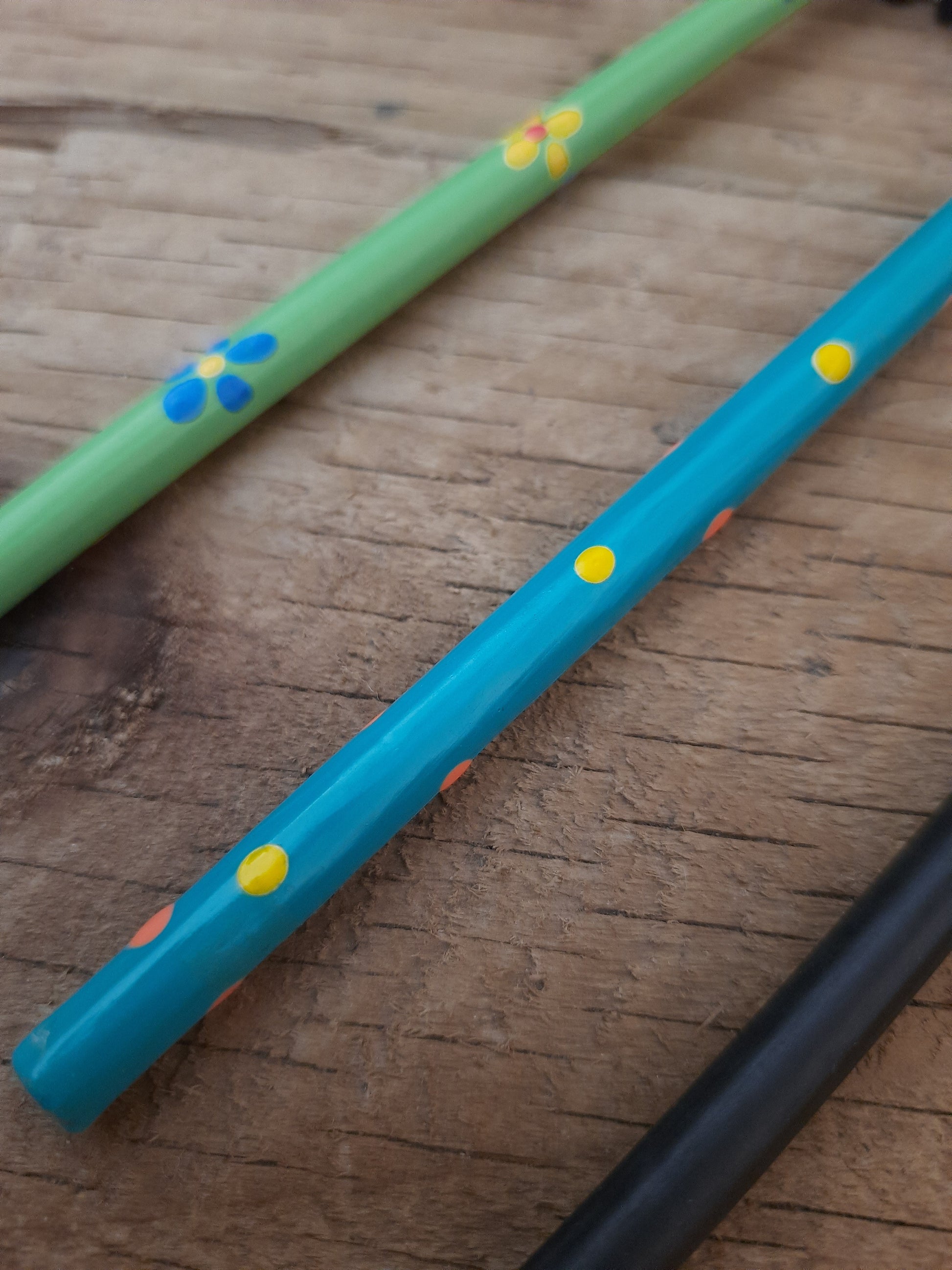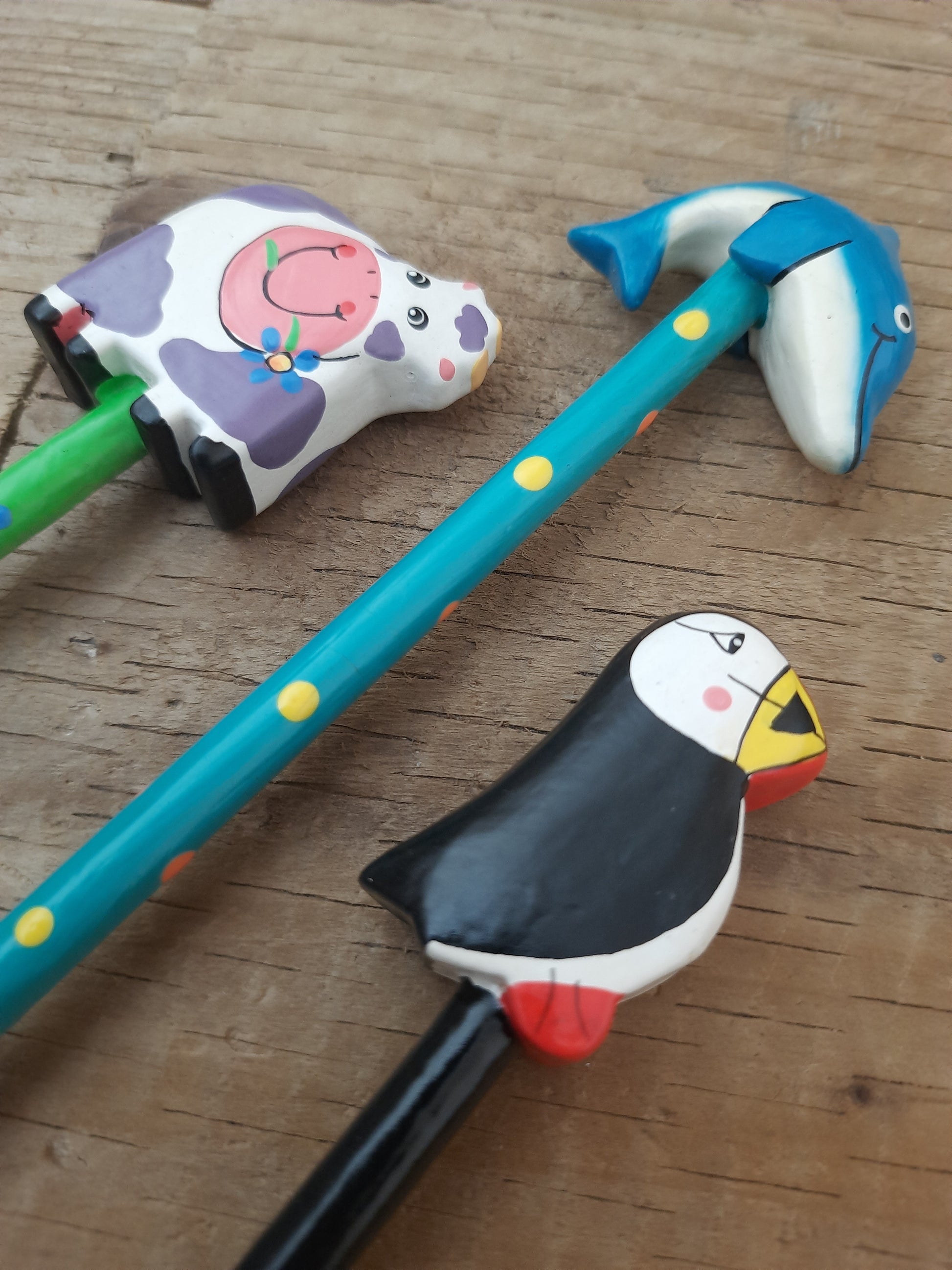 What is there not to love about this ebullient, charming fancy pencil? Its hand painted, fair trade and made with love and compassion by artisans in Indonesia. Its also made fromĀ albasia wood.