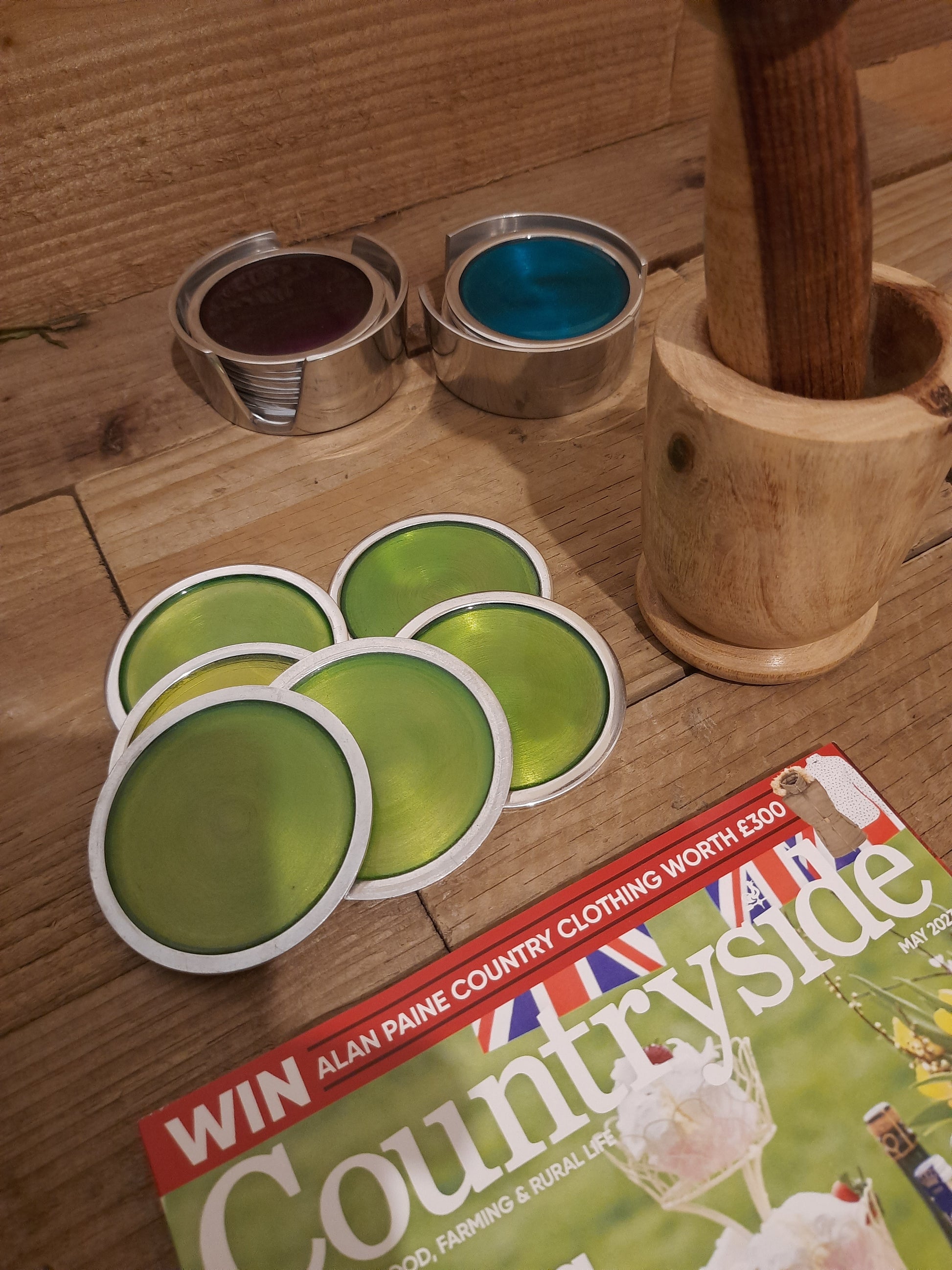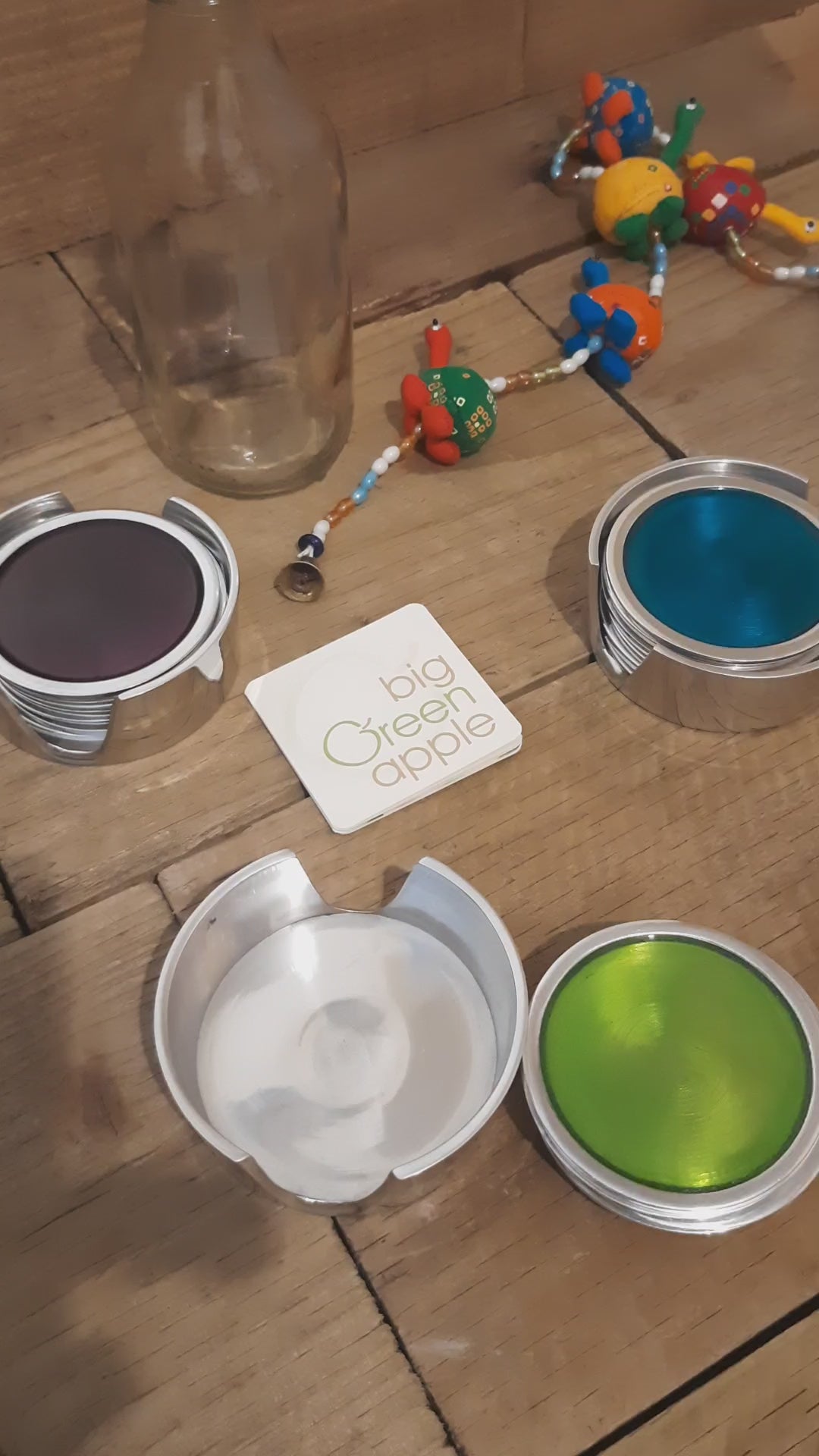 Indulge yourself or be tempted to entertain visitors or guests with these truly snazzy and conspicuous set of 6 recycled aluminium coasters.