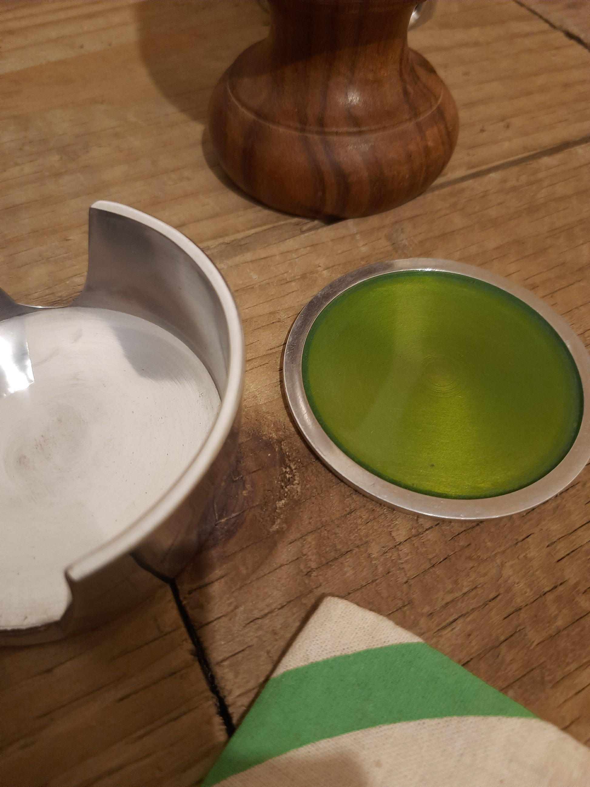 Importantly one of these aluminium coasters on the underside have some minor skirmishes and scratches due to manufacture, storage and transportation from India but is otherwise absolutely fine for your table decor.