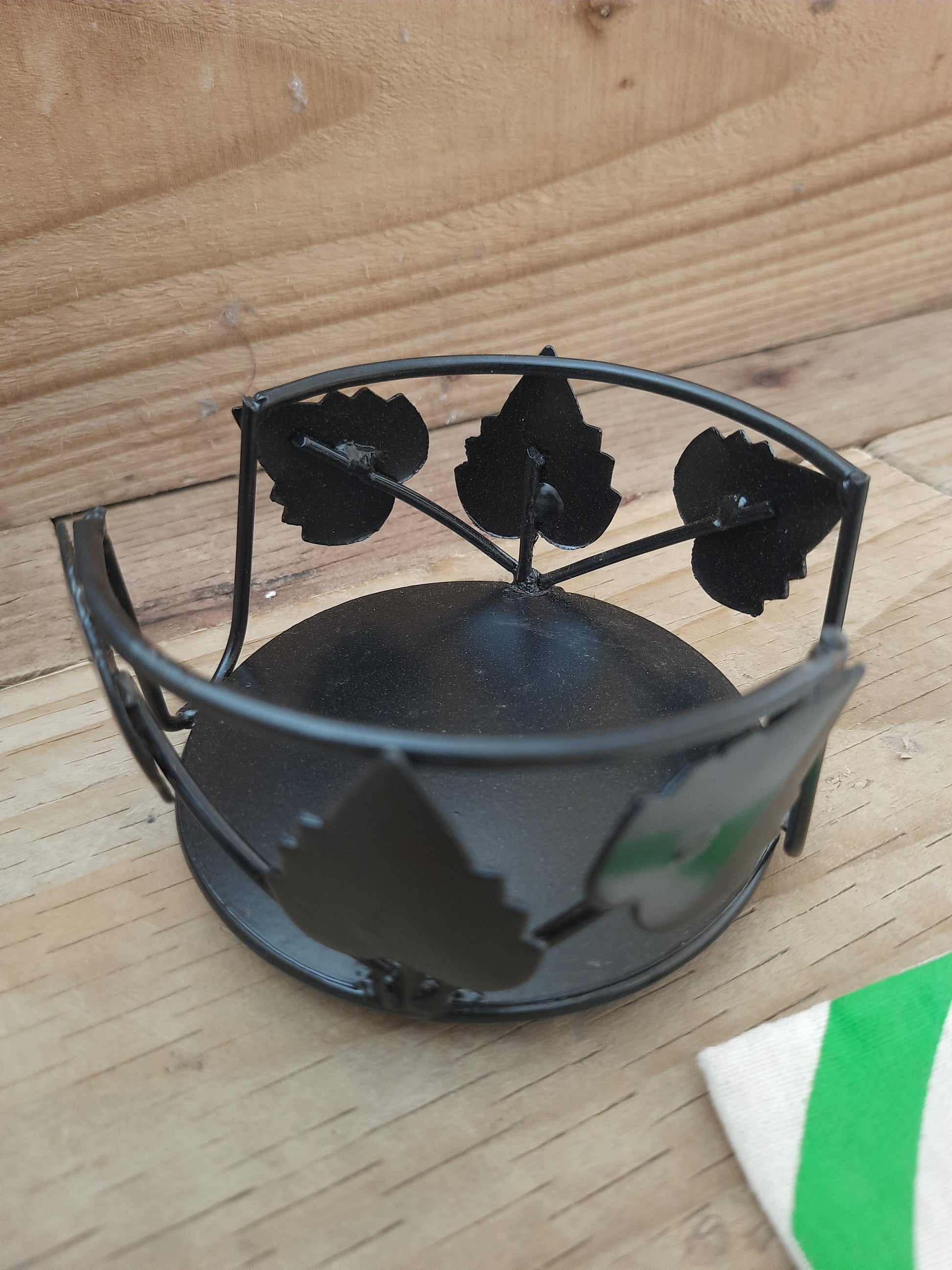 Housed in a sleek, black metal holder, this set combines rustic appeal with modern functionality.