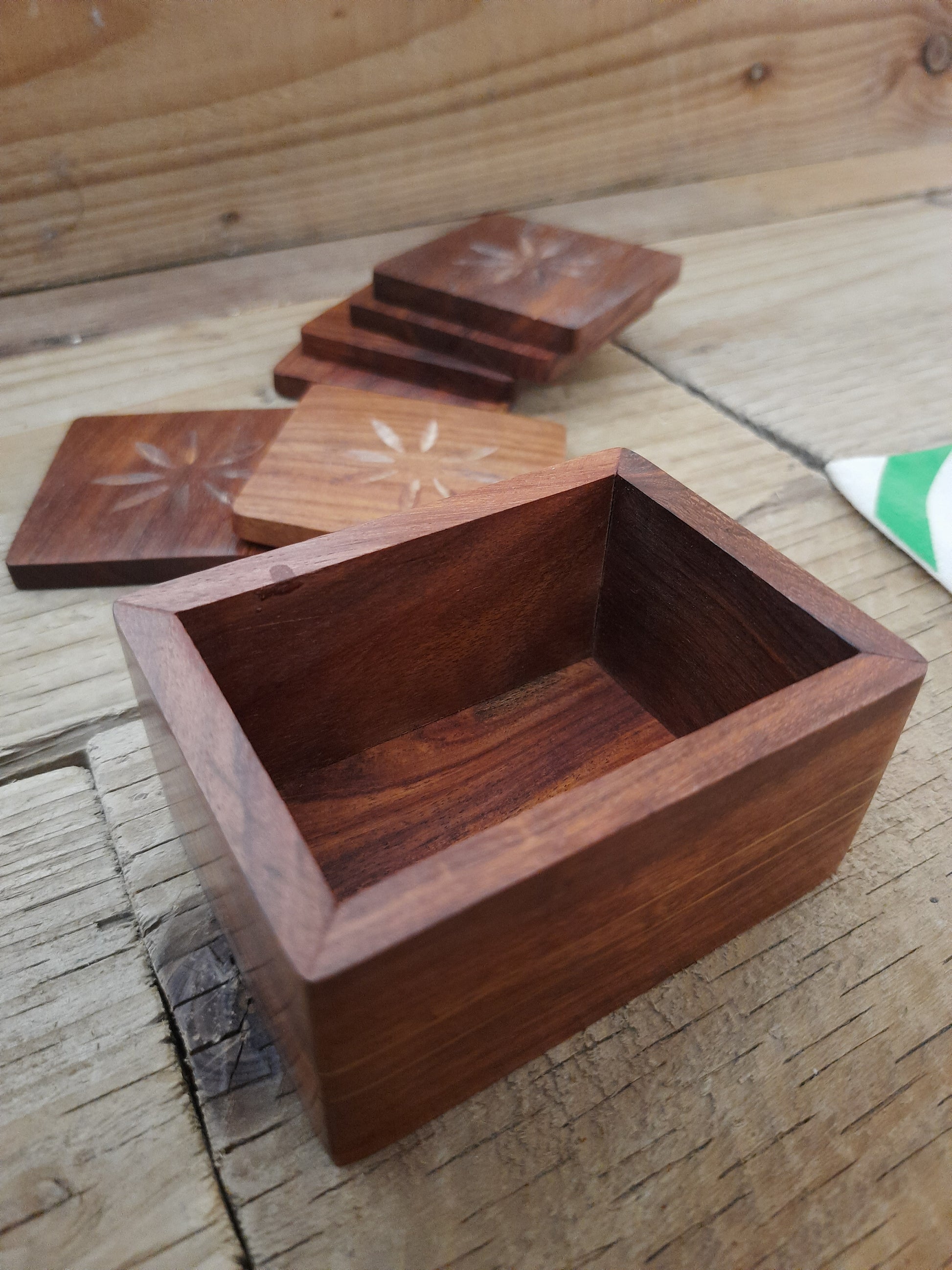 Well, what is there not to like about this high end wooden sheesham coaster set and holder.